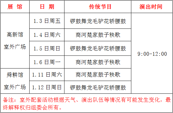 这些传统表演给鼠年的到来增添了浓浓的喜庆气氛。以下是济南年货会高新馆室外演出时间表,请各位亲们提前备好小板凳到济南国际会展中心室外广场欣赏传统民俗节目。